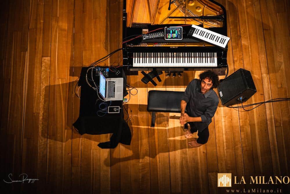 Gli strumenti e i linguaggi tecnologici più moderni, costruiti e programmati sull’esecutore stesso, si collegano al pianoforte classico: un modo unico per saldare insieme passato e futuro, rigore e sperimentazione, forma e fantasia. Chiaro, in questo approccio, è l’omaggio al compositore Luigi Nono che fu, oltre mezzo secolo fa, uno dei primi ad abbinare acustica ed elettronica.